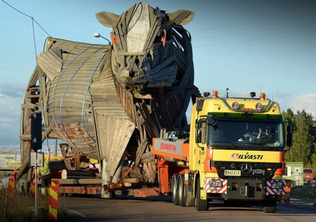 During the summer 2013 Silvasti carried out a rescue operation of a wooden work of art. This piece of art called “Woima the bull” is done by finnish artist Miina Äkkijyrkkä. In this rescue transport operation, “Woima” was transported from the port of Hamina to the home farm of Finnish celebrity Aira Samulin in Hyrsylänmutka, Tuusula. The transport operation received great attention and one of the main Finnish TV-channels, TV2, made a program of this special transport project. The program aired throughout Finland at prime time. Silvasti’s work as a part of this cultural event received a great accolade when Silvasti LTD and this transport operation were chosen as one of the four nominees to compete in the “Best transport of the year 2013”-title. The “Oscars” of special transports is an annual gala of the ESTA (European Association of abnormal road transport and mobile cranes). At the gala the best transport operations of the year are awarded. This year Silvasti will have the honor to fight for victory in the category “Best transport of the year under 120 tons”. Winner will be announced in the ESTA Awards gala in Amsterdam on 24.4.