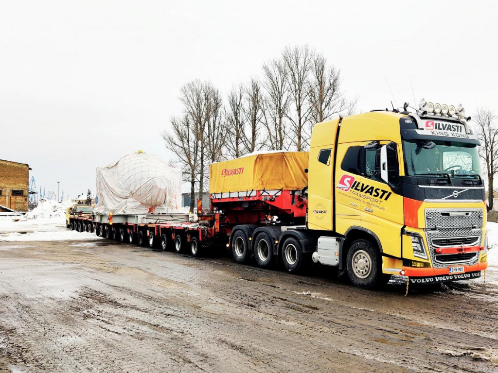 Isoimpia osia ovat mm. turbiinin navat, jotka Riikan voimalassa olivat painoltaan 147 tonnia, 411 cm leveitä ja 431 cm korkeita. Silvasti olikin paikalliselle yhteistyökumppanillemme SIA Ultimalle luonteva valinta niiden kuljettajaksi satamasta voimalaitokselle. Helmikuussa 2021 oli jo kuudennen turbiinin navan vuoro.
